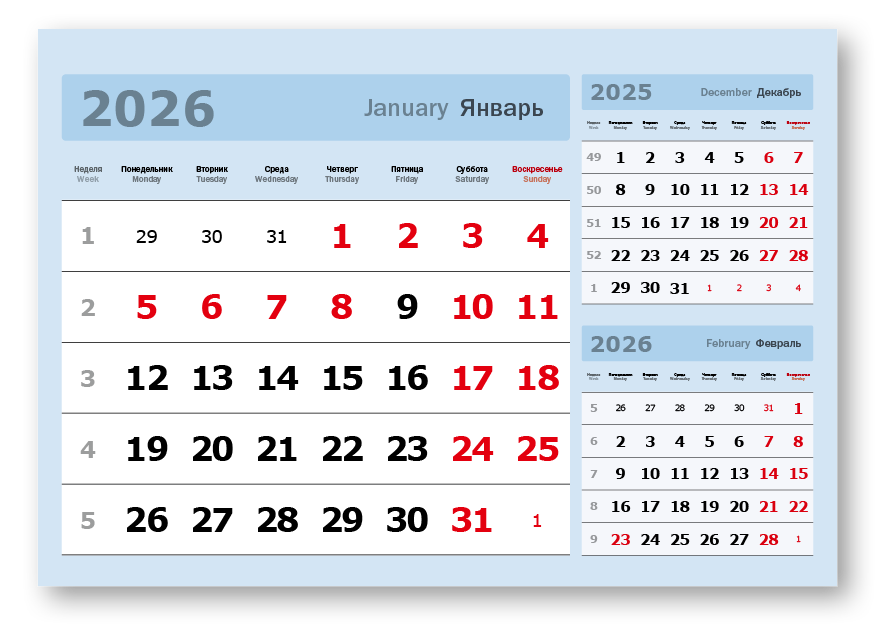 2026 - «3 в одном» мелованные мини «3 в 1» (297*207) голубой