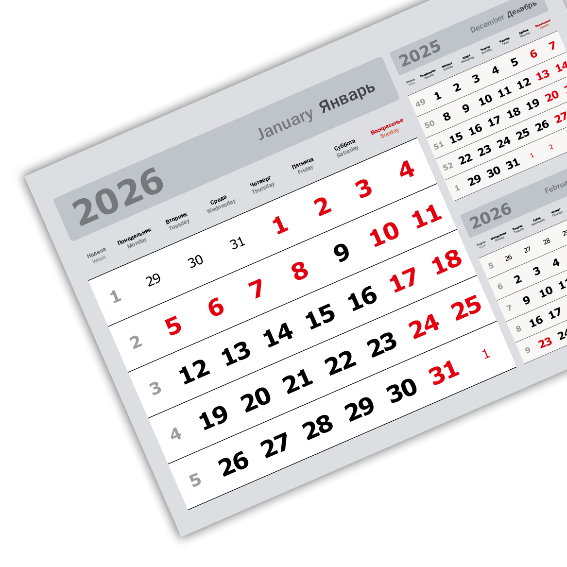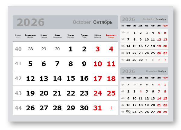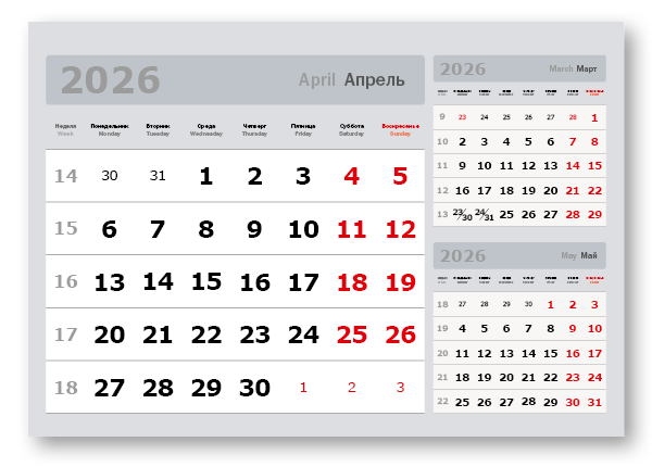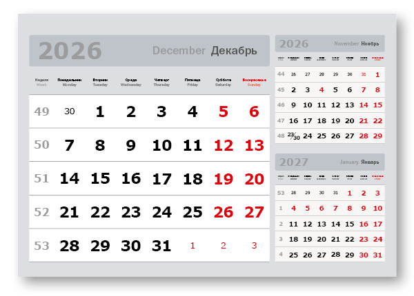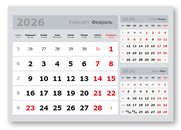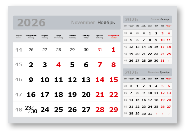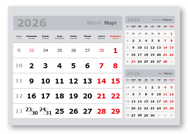 2026 - «3 в одном» мелованные мини «3 в 1» (297*207) серый