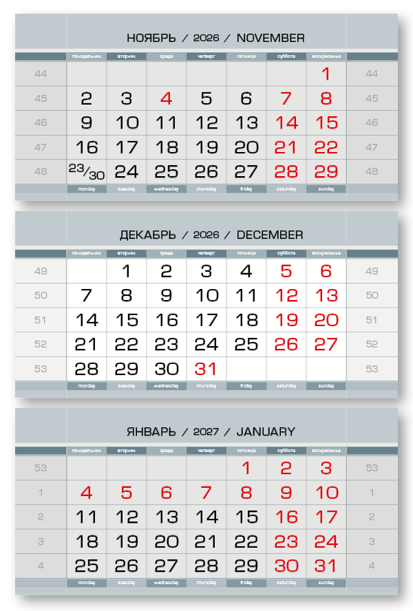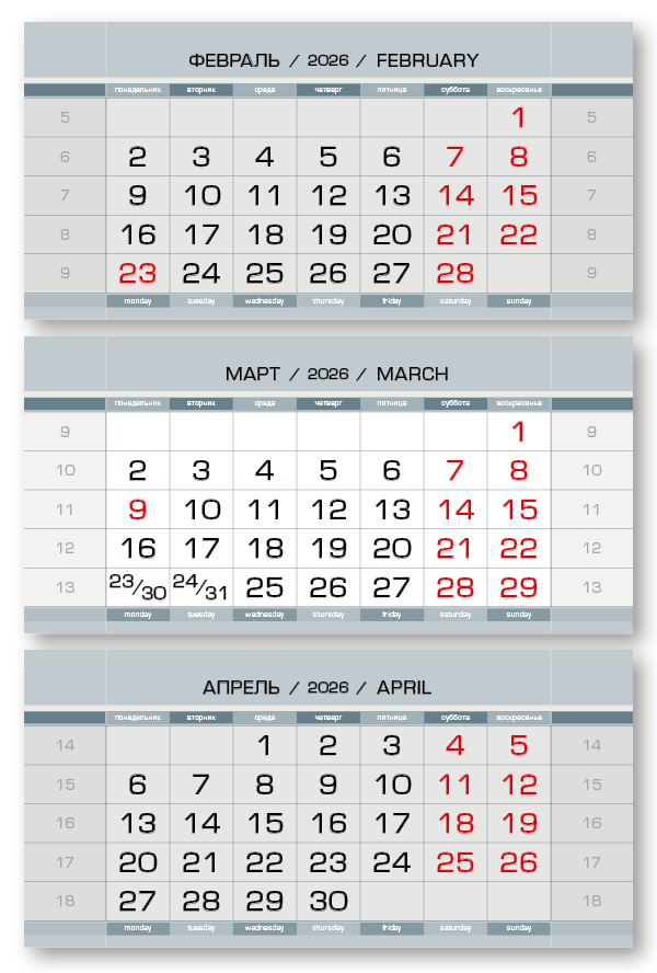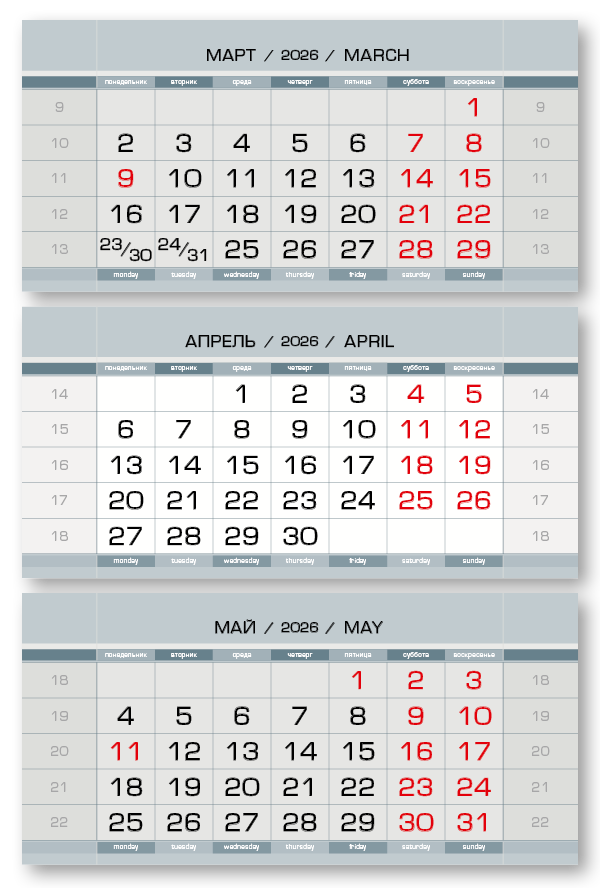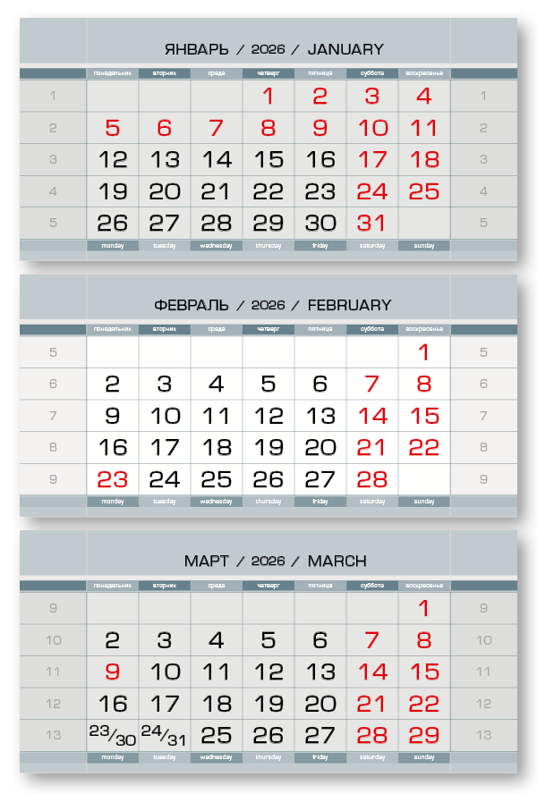 2026 - ПРОИЗВОДСТВЕННЫЕ мини 3-сп (3 х 297*145) серый