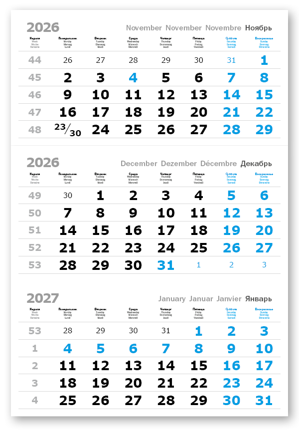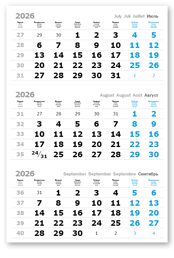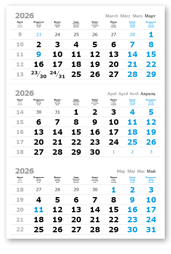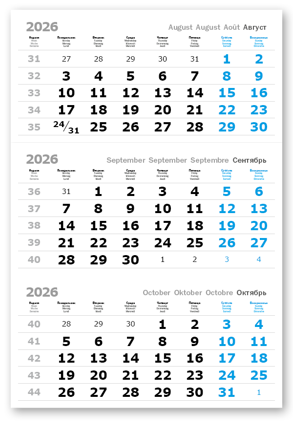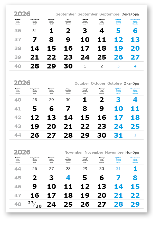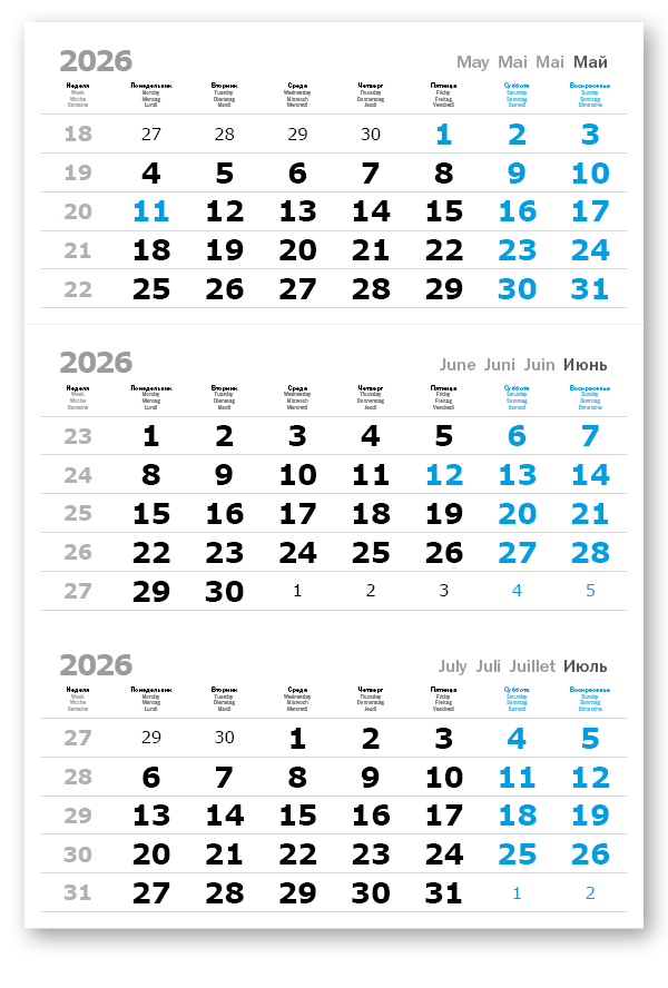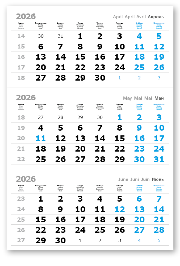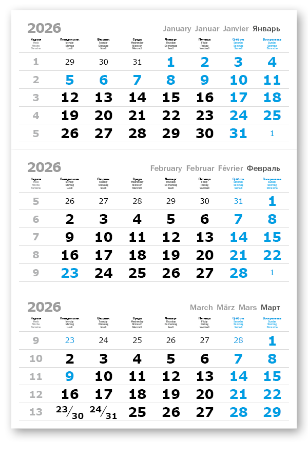 2026 - ПРОИЗВОДСТВЕННЫЕ ВЕРДАНА офсет миди 1-сп (1 х 335*490) голубые выходные