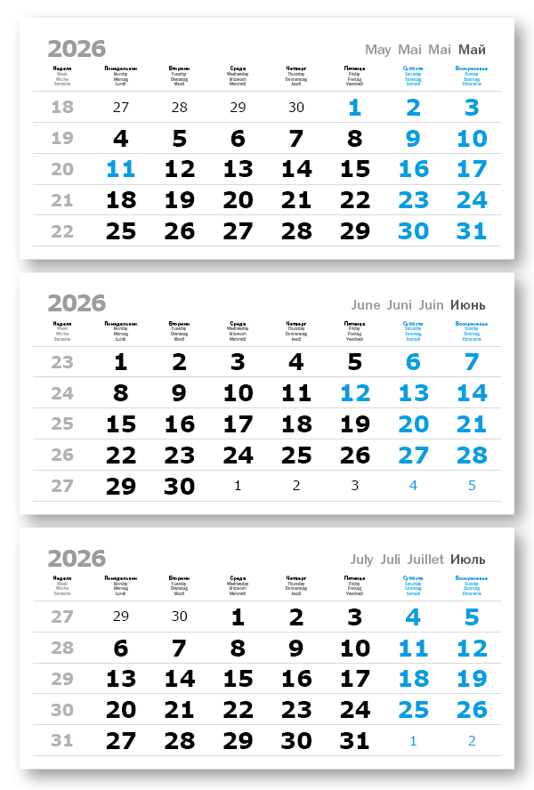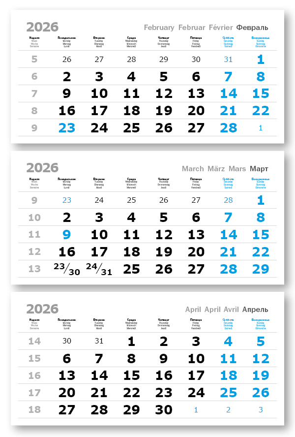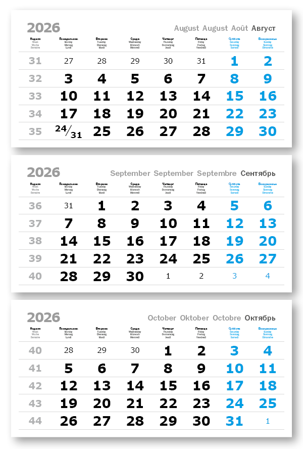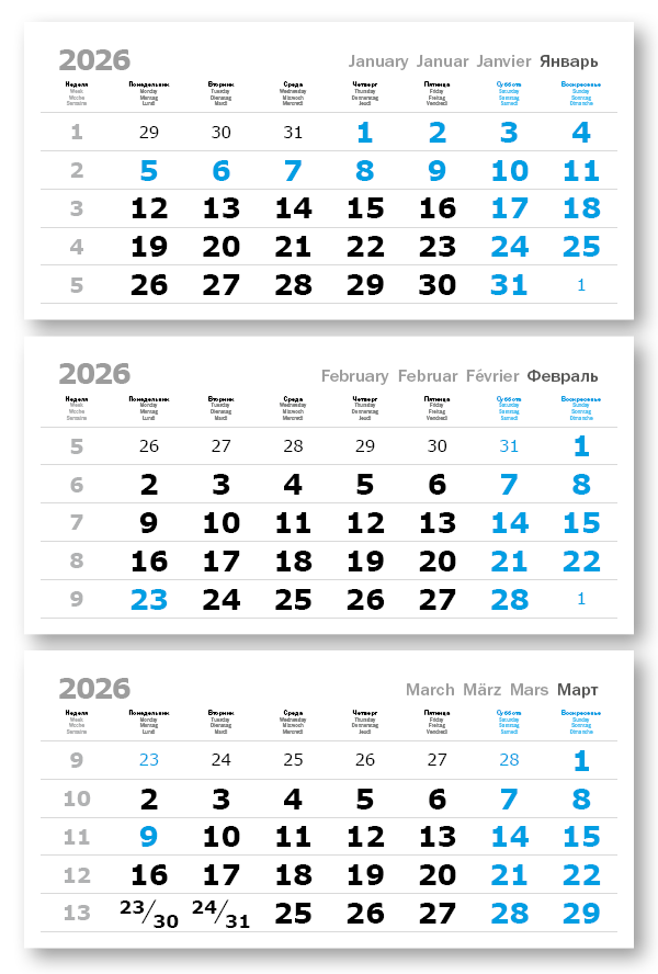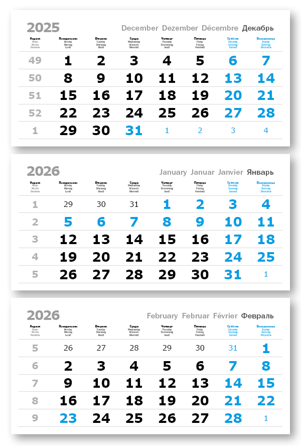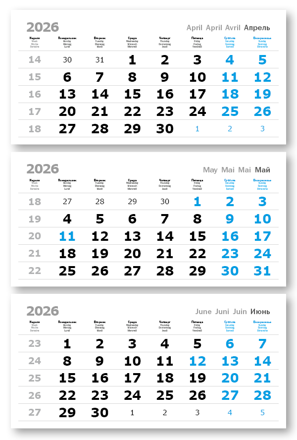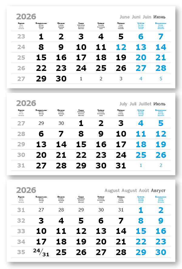 2026 - ПРОИЗВОДСТВЕННЫЕ ВЕРДАНА офсет миди 3-сп (3 х 335*160) голубые выходные