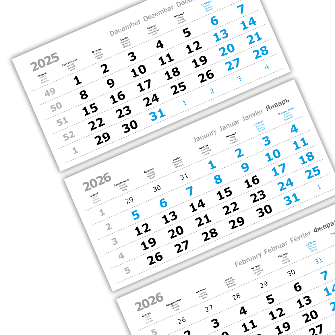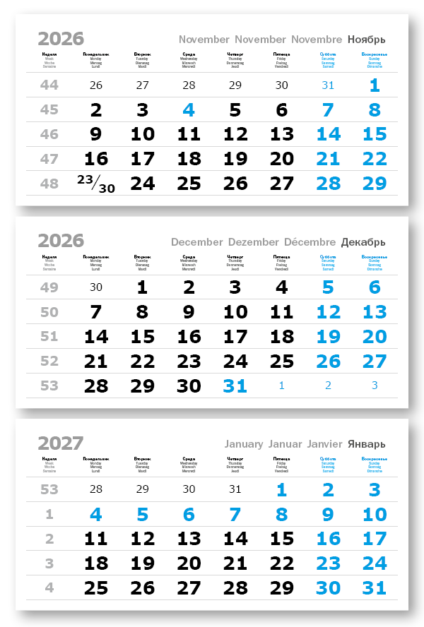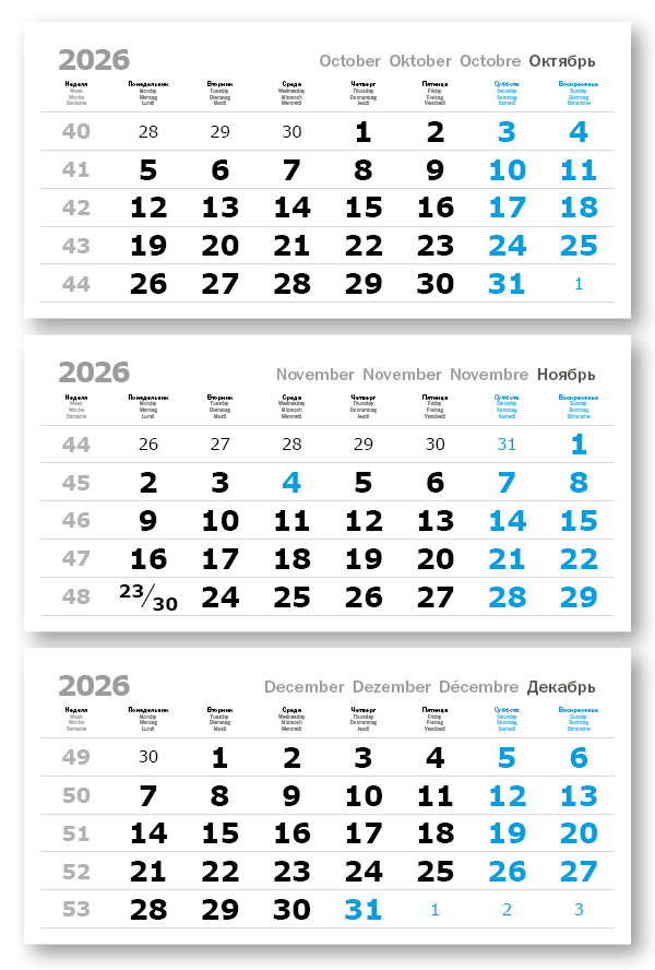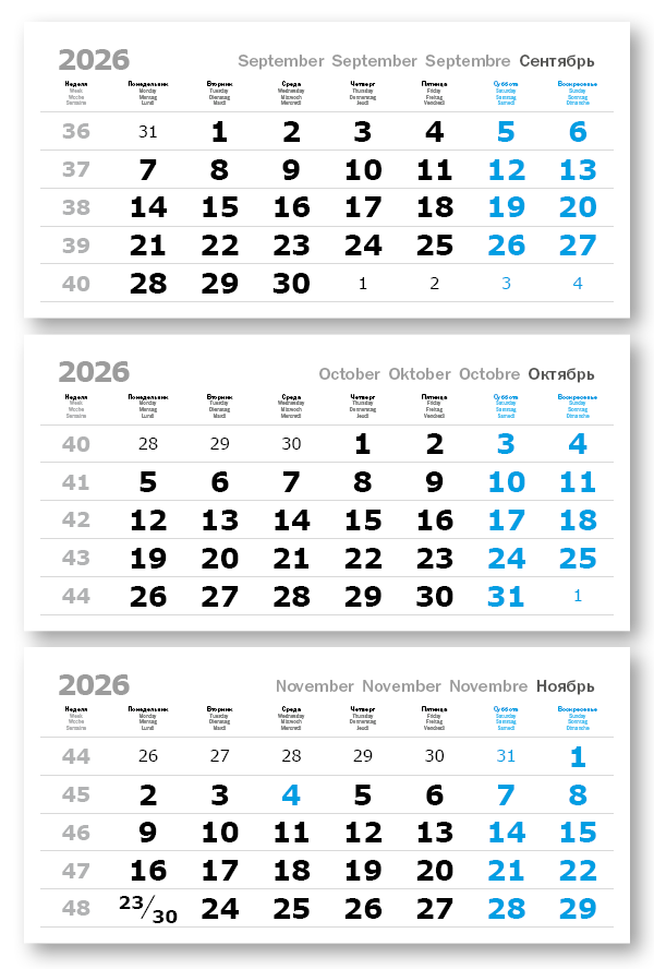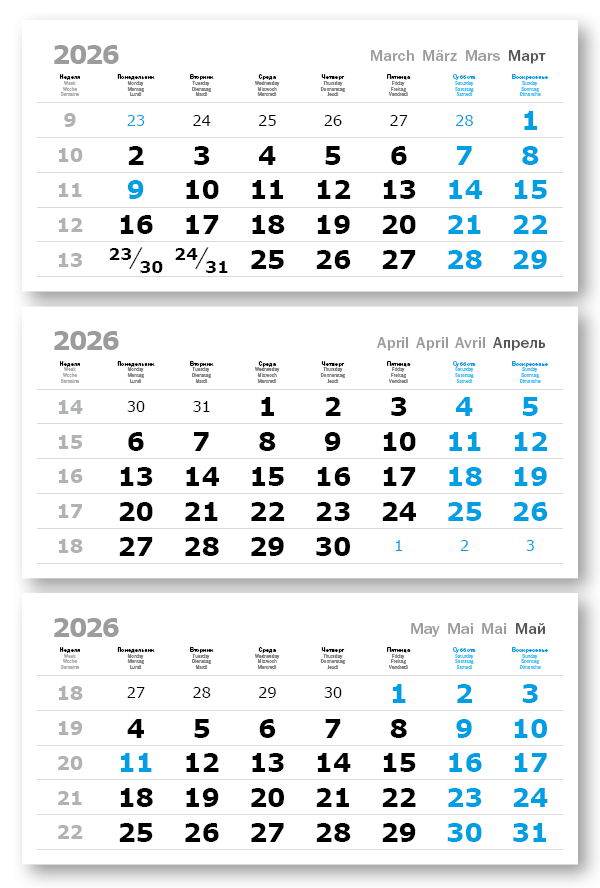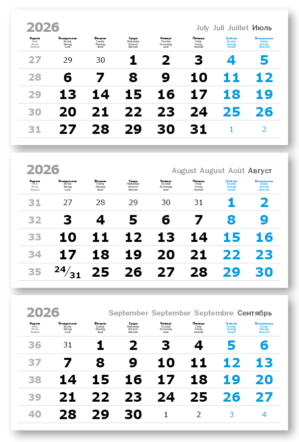 2026 - ПРОИЗВОДСТВЕННЫЕ ВЕРДАНА офсет миди 3-сп (3 х 335*160) голубые выходные